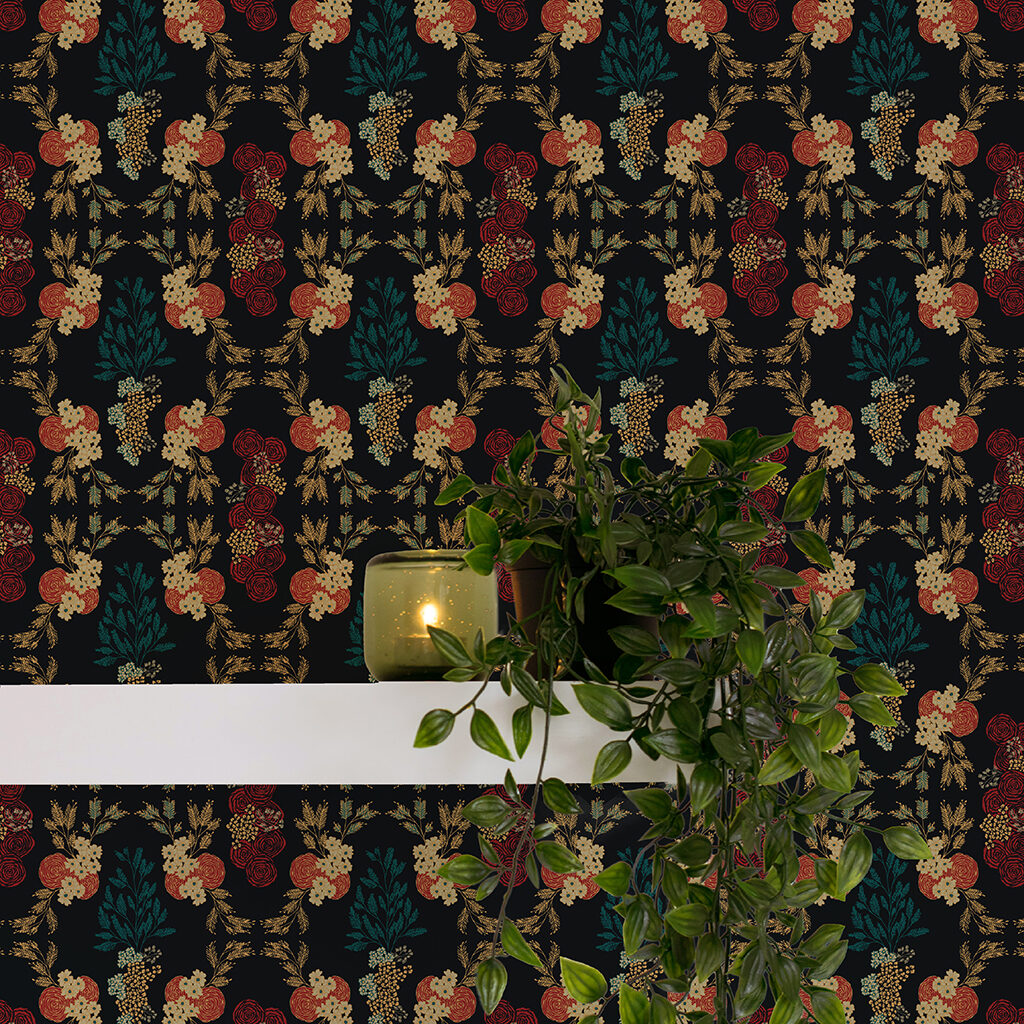 My work is elegant with a slight edge, graceful without becoming too sweet. I love asymmetrical balance, a sense of movement, fluid lines, strong contrast, warm earth tones and deep, moody jewel tones. I would love to see my patterns land on fabric, home decor and wallpaper, creating objects and environments that fall somewhere between bohemian, glam and modern.