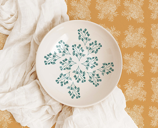 I usually take an improvisational approach to drawing, experimenting with geometry and natural forms to see what develops. I combine and arrange these hand-drawn motifs until I find a composition that feels right. There’s a blend of surprise and intentionality in the patterns that emerge.